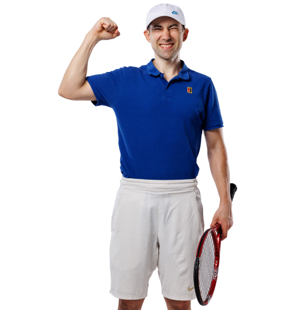 4 года играет в теннис, любитель.